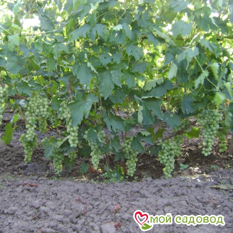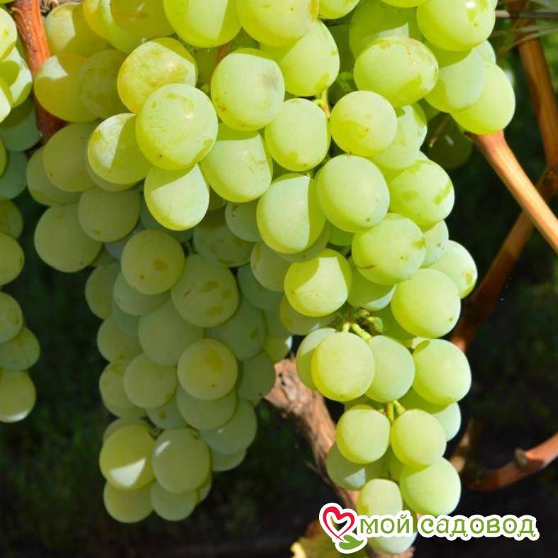 Виноград Антоний Великий – гибридный сорт, созревающий за 130 дней. Благодаря сильным кустам, грозди очень плодородные. Ягоды большие, янтарно-зеленого цвета округлой формы. Структура ягоды плотная, мясистая. Вкус – насыщенный, с нотками муската. Магазин Мой Садовод, рекомендации по уходу Уход за виноградом сводится к регулярным поливам в сухую погоду, подкормкам и формированию куста. Для подкормки используют минеральные и органические удобрения (перепревший навоз, компост). Ранней весной кусты виноград поливают полным минеральным удобрением, растворенным в воде, перед цветением такую подкормку повторяют. Перед созреванием вносят фосфорно-калийные удобрения, а после сбора урожая проводят подкормку калием для повышения зимостойкости растений. Кроме того для лучшего вызревания лозы рекомендуется удаление пасынков и прищипывание верхушек в начале сентября. Формирование куста Винограда. Для формирования виноградных кустов необходимо установить надежную опору. Самая простая представляет собой два столба с несколькими рядами проволоки между ними. По мере роста побеги подвязывают к проволоке, задавая им нужное направление. Формирование куста винограда начинают с первого года, оставляя не более двух здоровых побегов у основания, остальные выламывают. На второй год на кусте оставляют по три почки на каждом побеге, на третий год на каждом плече оставляют 2-3 сильных побега, остальные удаляют. Пожалуйста, помните, что транспортировка и пересадка — стресс для растения. Перед высадкой в открытый грунт обработайте корневую систему стимулятором роста. С заботой о растениях, Мой Садовод. Вы можете купить саженцы винограда Антоний Великий в нашем интернет магазине недорого с доставкой на дом. Так же вас возможно заинтересуют другие сорта столового винограда: виноград кодрянка и виноград лора. Если есть вопросы звоните. В нашем интернет-магазине вы сможете купить Столовые сорта Так же возможно вас заинтересуют Виноград Новочеркасский красный и Виноград Юлиан